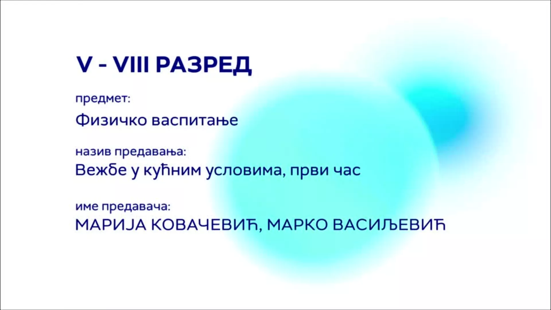 ОШ5 до ОШ8: Физичко васпитање – Вежбе у кућним условима, 1. час